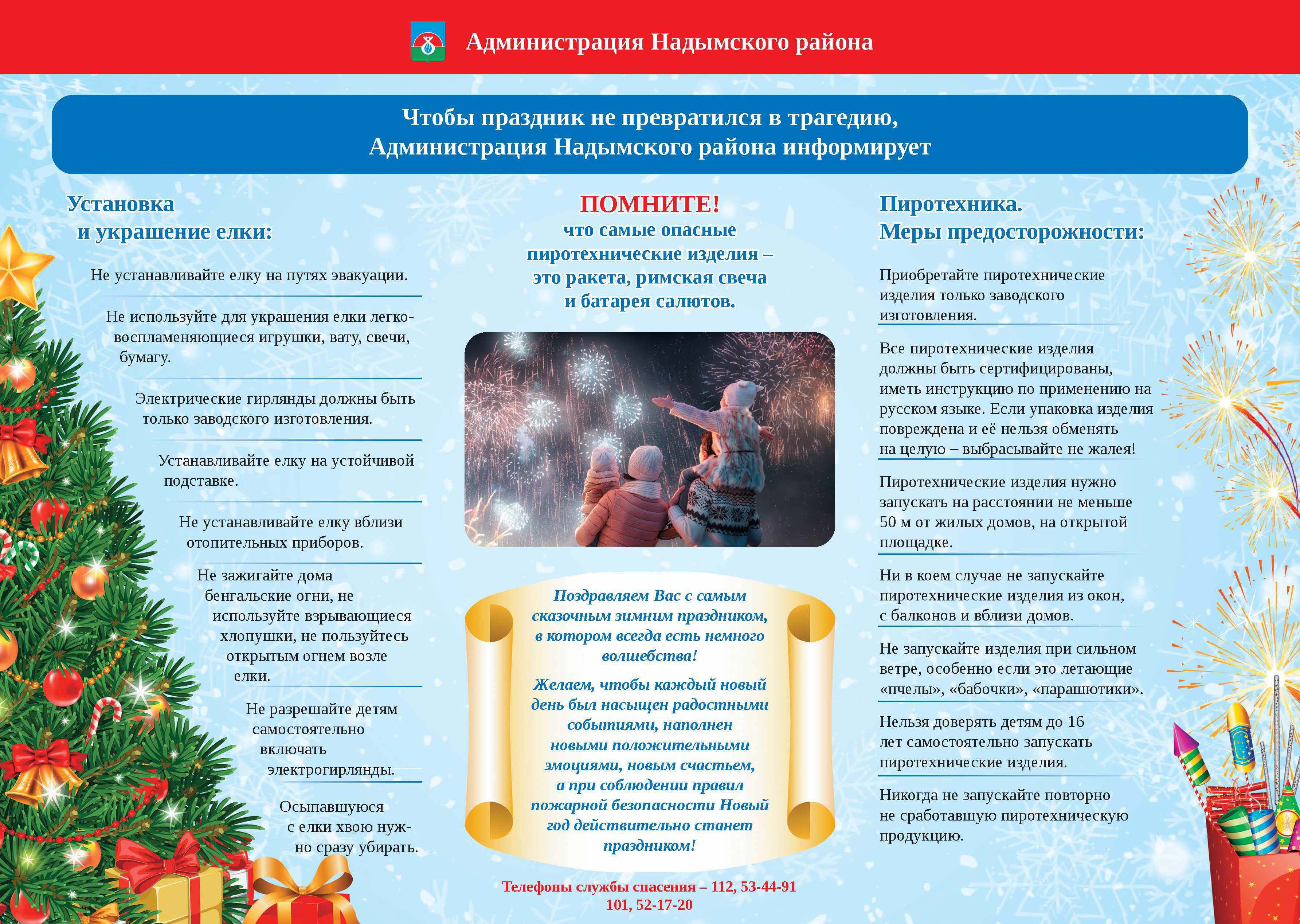 Поздравляем Вас с самым сказочным зимним праздником, в котором всегда есть немного волшебства! Желаем, чтобы каждый новый день был насыщен радостными событиями, наполнен новыми положительными эмоциями, новым счастьем, а при соблюдении правил пожарной безопасности Новый год действительно станет праздником!
